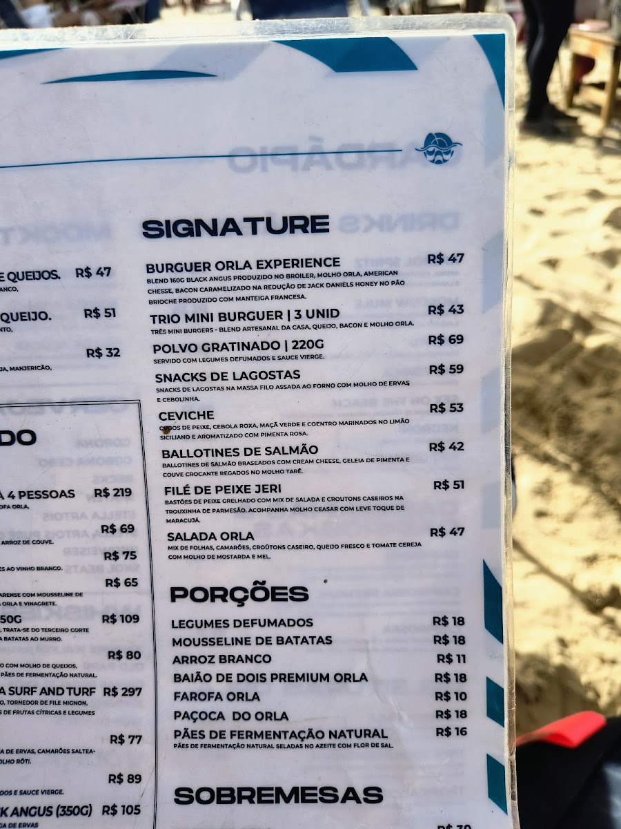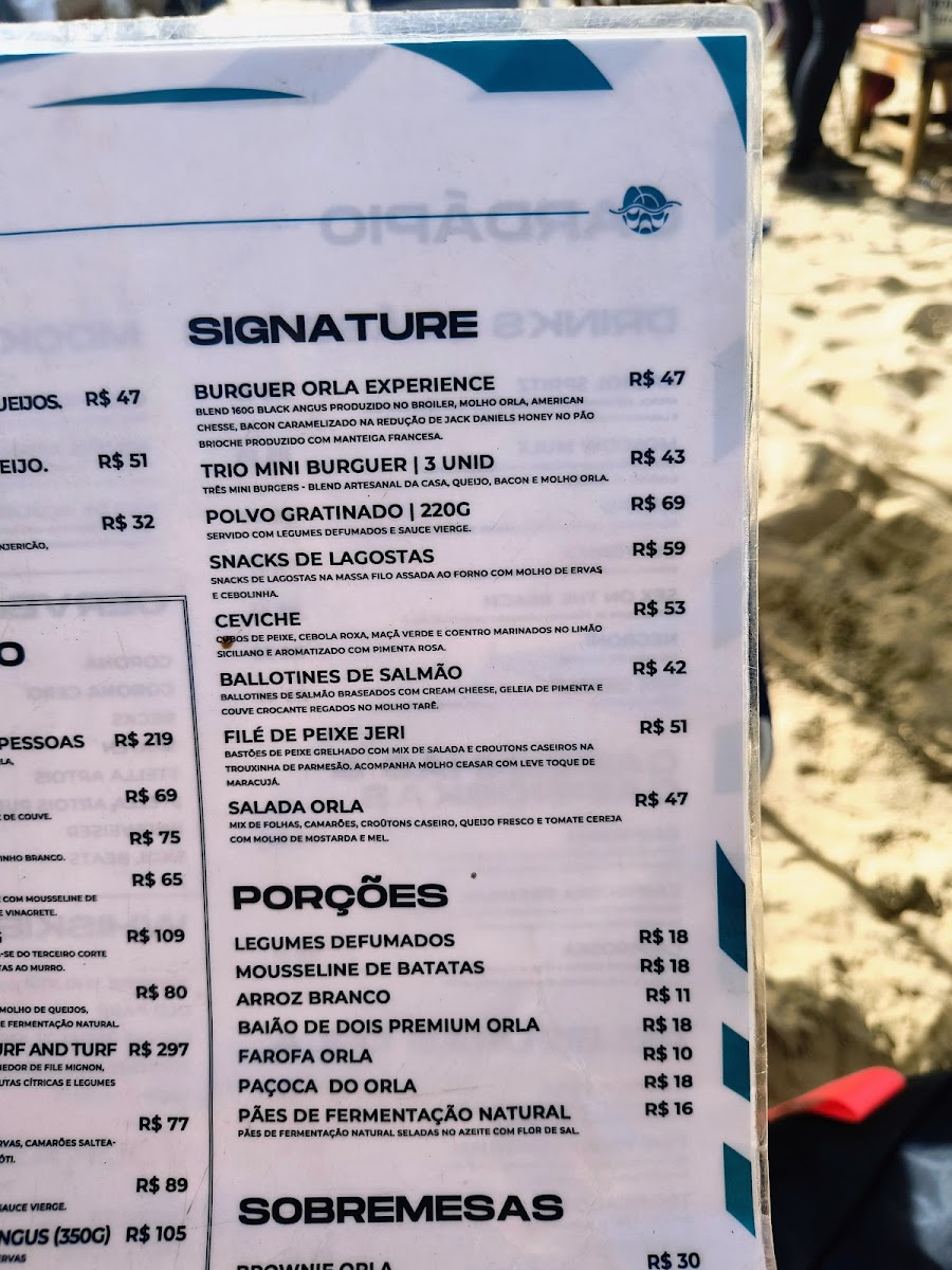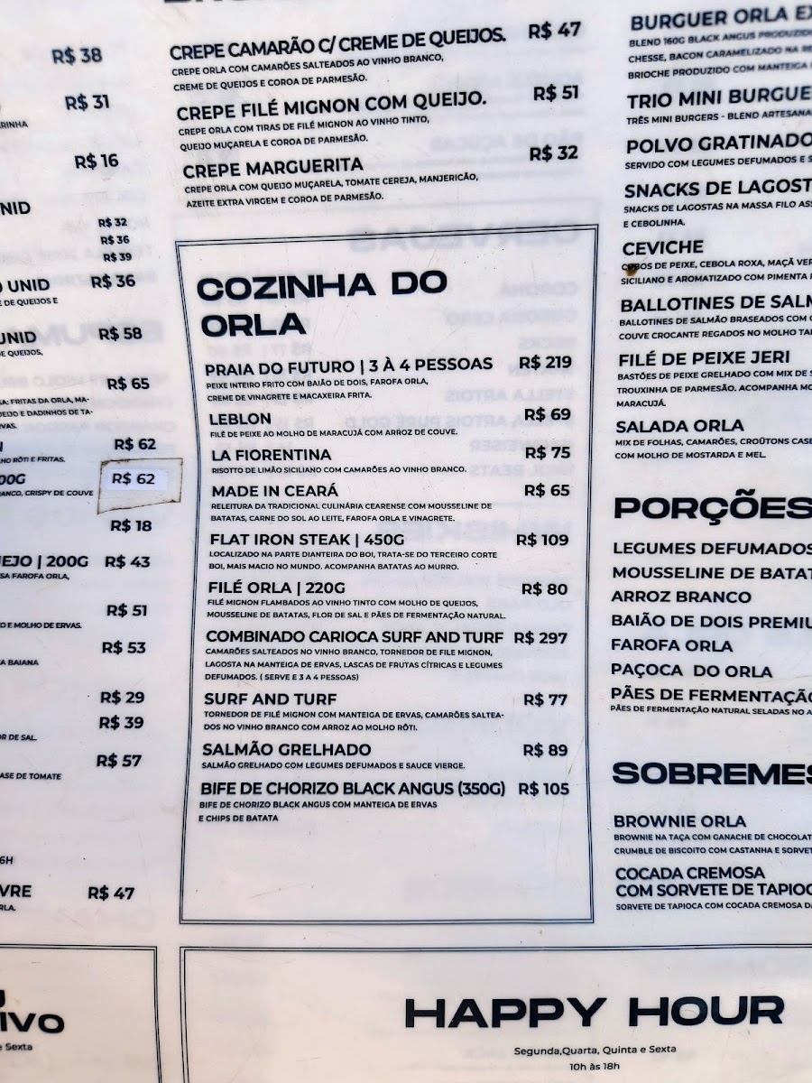 Discover culinary delight at Orla Praia Club, nestled along the stunning Praia do Futuro in Fortaleza. This restaurant invites you to savor a menu that marries exquisite flavors with a relaxed beachside ambiance. Notable highlights include the PRAIA DO FUTURO, featuring a perfectly fried whole fish accompanied by traditional baião de dois and creamy farofa Orla — a true homage to local cuisine. For those seeking indulgence, the COMBINADO CARIOCA SURF & TURF offers a sumptuous blend of sautéed shrimp, tender filet mignon, and buttery lobster, all enhanced by a chorus of smoked fruits and vegetables.